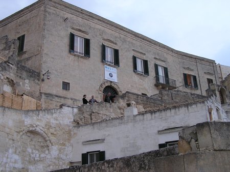 The Sassi district has housed civilization since 2 B.C. The soft stone allowed the residents to dig caves, and use the stones cut from the caves to build edifices on their dwellings. However, lack of utilities (including sanitation) caused many problems, and in the 1950s, the Italian government relocated the residents to modern housing. The district was slated to be razed, but intervention by the Fondazione Zétema and others saved this richly historic area. The district is undergoing renovations, including utilities, but the stairways, alleyways, and the Matera stone buildings will remain to give the city a timeless quality. |